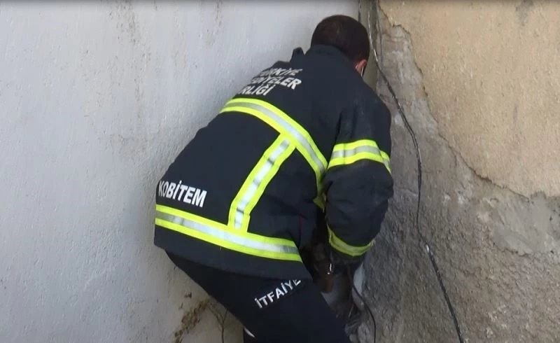 İki bina arasına sıkışan köpek bakın nasıl kurtarıldı?