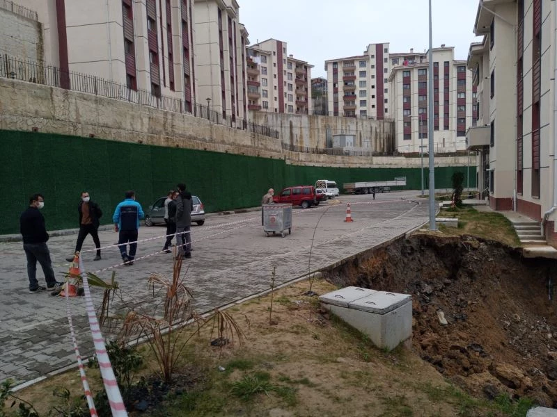 Zonguldak’ta Baştarla Mahallesi TOKİ Konutlarında sağanak yağış sonucunda iki bina arasında heyelan meydana geldi.