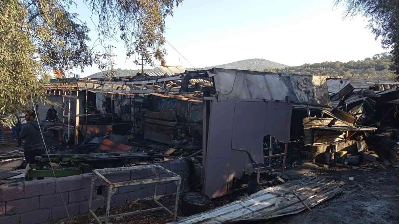 Muğla’nın Bodrum ilçesindeki çıkan yangında bir marangozhane tamamen yanarken yanındaki ferforje imalathanesinde büyük çapta maddi hasar oluştu.