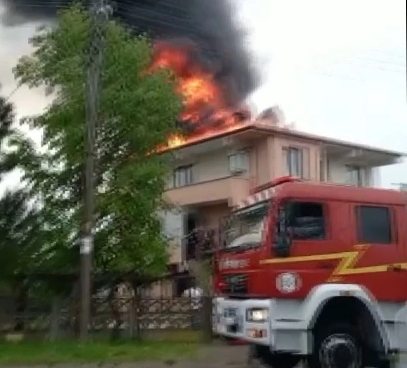 Kocaeli’de 2 katlı apartmanın çatısı alevlere teslim oldu, o anlar kameralara da yansıdı.