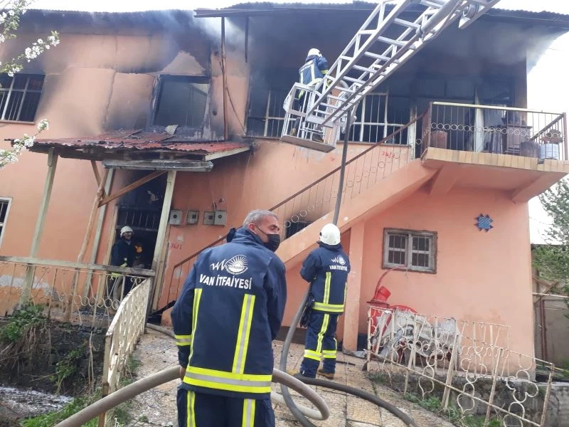 Van’ın Gevaş ilçesinde çıkan yangında iki katlı bir ev kullanılamaz hale geldi.