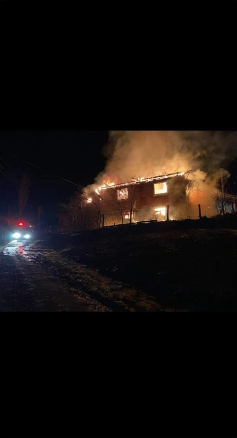 İki katlı ev ve ahır küle dönerken, yangının çıkış nedeniyle ilgili çalışma başlatıldı.