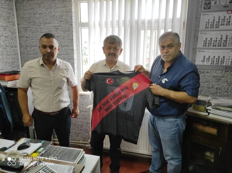 Zonguldak Maden Şehitleri Aileleri Derneği’nin, uzun zamandır maden şehidi çocukları için istihdam sağlamak amacıyla yürüttükleri çalışmalara Ereğlili iş insanından destek geldi. Zonguldak Maden Şehitleri Aileleri Derneği Başkanı Çetin Yiğit, iş yerinde maden şehidi çocuklarına istihdam sağlayan Şaban Gülhan’ı ziyaret etti. Başkan Yiğit, Gülhan’a teşekkür ederek özel ürettikleri üzerinde isminin yazılı olduğu maden şehidi forması hediye etti.