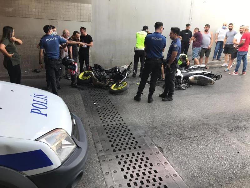 İzmir’in Buca ilçesinde alt geçitte iki motosikletin çarpışması sonucu kaza yerinde 3 kişi yaralandı. Motosiklet sürücüleri ve yol kenarında yürüyen yayanın yaralandığı kaza ile ilgili soruşturma başlatıldı.