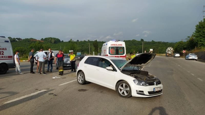 Akçakoca-Karasu çevre yolu cezaevi kavşağında iki otomobilin çarpışması sonucu meydana gelen kazada, 3 kişi yaralandı.