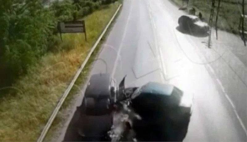 İki otomobilin kafa kafaya çarpıştığı kaza kamerada