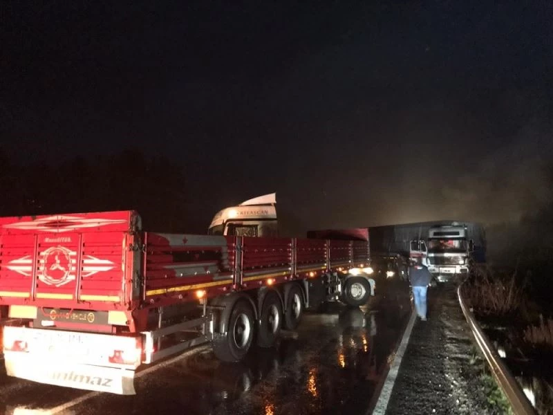 Antalya’nın Akseki ilçesinde yağış sebebiyle iki tırın çarpışması sonucu meydana gelen kazada yaralanan olmazken, Antalya-Konya karayolu 2 saat trafiğe kapalı kaldı.