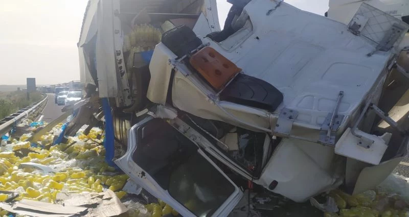 İki tırın karıştığı kazada araçta sıkışan sürücü hayatını kaybetti