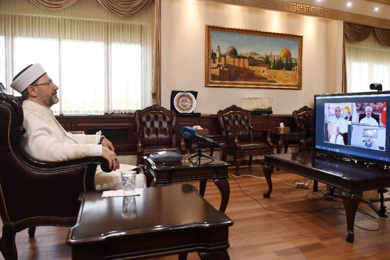 Video konferans sistemiyle gerçekleştirilen görüşmede Diyanet İşleri Başkanı Erbaş, tebrik için kendisini arayan Sabri’ye teşekkür ederek, “Ayasofya’nın açılmasının ardından bizi aramanız, mutluluğunuzu ifade etmeniz bizim için çok önemli. Bu açıdan ben çok teşekkür ediyor, kolaylıklar diliyorum. Allah yar ve yardımcınız olsun” dedi.