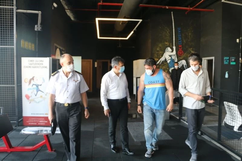 İl Jandarma Komutan Yardımcısı Yarbay Murat Neşet Büyüker ile Gençlik ve Spor İl Müdürü Murat Eskici, alışveriş merkezindeki spor salonunu da ziyaret ederek, koronavirüs nedeniyle alınan önlemleri inceledi.