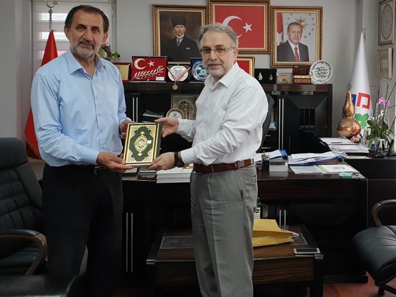 Zonguldak’daki görevinden Düzce il Müftülüğüne atanan Rüstem Can, ilçelerdeki çalışmaları denetlemeye devam ediyor. Müftü Rüstem Can son olarak Kaynaşlı Belediye Başkanı Birol Şahin’i makamında ziyaret ederek, ilçede yapılan çalışmalar hakkında bilgiler aldı. Başkan Birol Şahin, ilçedeki camilerin düzenli temizliğini üstlendiklerini, yatılı Kur’an Kursu’nun da ihtiyaçlarını karşılayabildikçe yaptıklarını belirtirken, Müftü Can yaptığı çalışmalardan dolayı Başkan Şahin’e teşekkür etti.