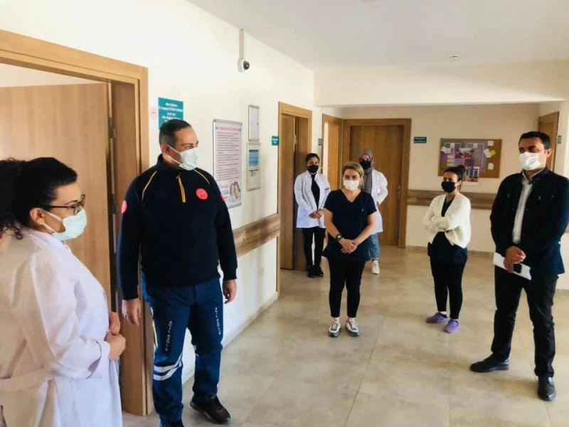 Sağlık Müdürü Erkan Hirik, personellerle sohbet ederek, aşılama süreci ve pandemi de gösterilen özverili ve gayretli çalışmalarından dolayı teşekkür etti.