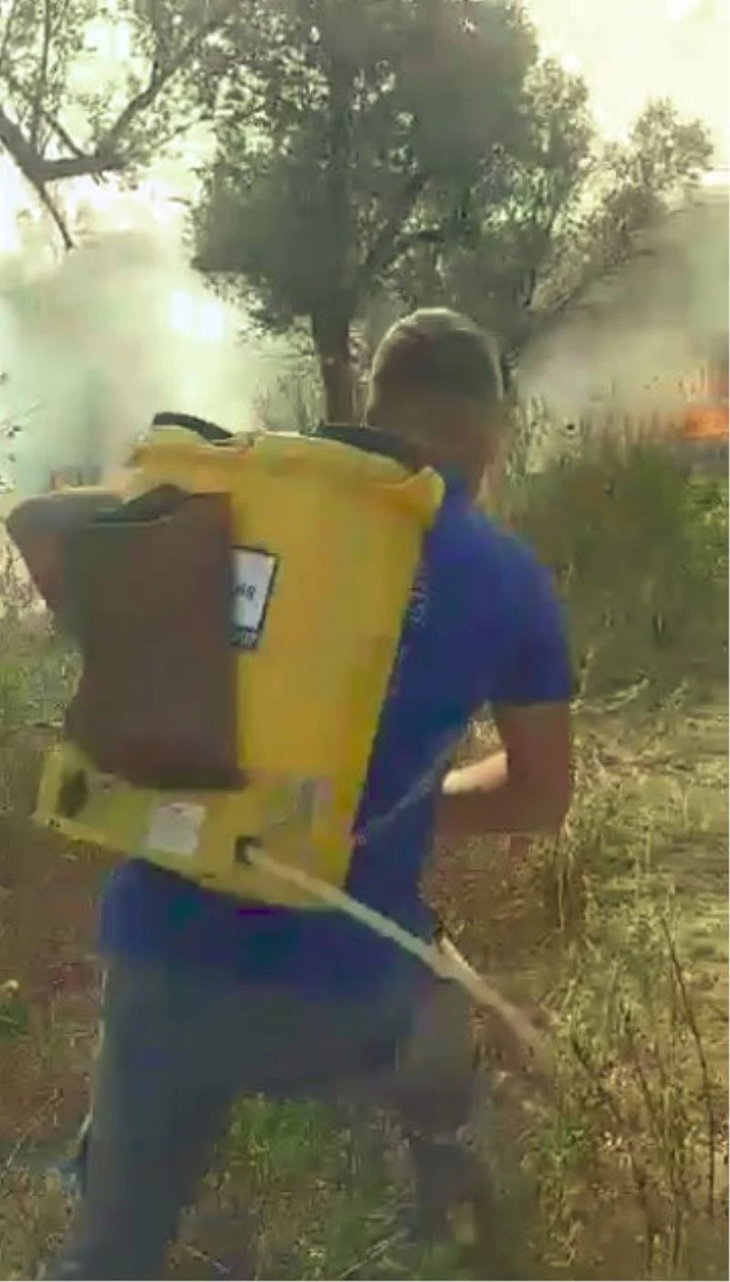İlaçlama makineleriyle, ağaç dallarıyla yangına müdahale ettiler