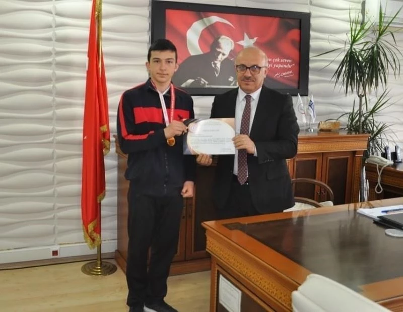 Yıldız Erkekler Yarışmalarında 61 kilogramda Türkiye birincisi olan Alper Tuncay, Yıldız Kızlar Yarışmalarında 55 kilogramda Türkiye üçüncüsü olan Afrasu Bozkurt, İlçe Milli Eğitim Müdürü Mahmut Demir’i makamında ziyaret etti. Başarılı sporcuları tebrik eden Mahmut Demir, öğrencileri başarı belgesi ile taltif etti ve çeşitli hediyelerle ödüllendirdi. Türkiye birincisi olan Alper Tuncay’a Milli Takımda da başarılar dileyen Mahmut Demir, ülkemize güzel sonuçlarla döneceğine inandığını söyledi.