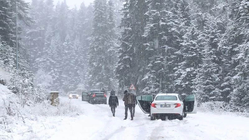 Ilgaz Dağı’na beklenen kar yağışı başladı