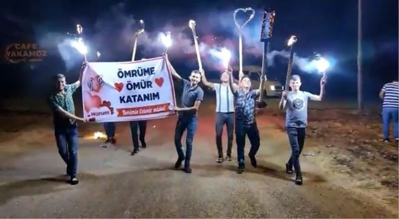 Olay, Adıyaman’ın Kahta ilçesinde yaşandı. Doğan Yücel isimli genç, sevdiği İpek N.’ye ilginç bir evlilik teklifi yapmak istedi. Arkadaşları ile bir araya gelen ve meşaleler yakan genç, “Ömrüme ömür katanım, benimle evlenir misin” yazılı pankart ile cep telefonundan görüntülü olarak sevdiği kıza evlilik teklif etti.