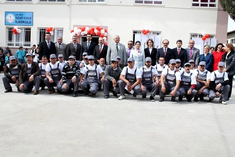 Hatay?ın Dörtyol İlçesi Yeşilköy Beldesindeki 19 Aralık İlkokulu?nda Kale Seramik Eğitim, Sağlık ve Sosyal Yardım Vakfı?nın ?İlk İşim Okullarda Değişim? projesi kapsamında okul tadilatı ve 25 kursiyer için sertifika törenin düzenlendi.