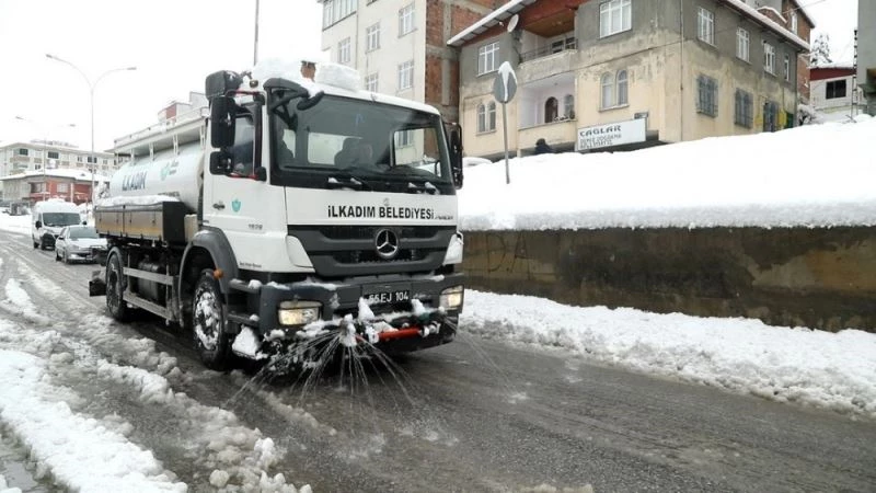 Samsun İlkadım Belediyesi ekipleri iş makineleriyle yol temizleme, tuzlama ve kar küreme çalışmalarına aralıksız devam ediyor.