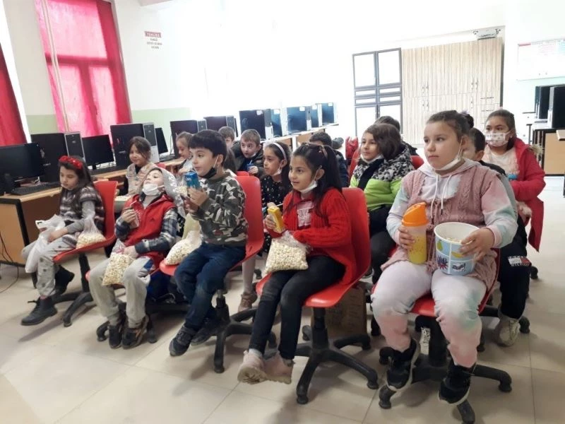 İlkokulda film günü etkinliği: yukarıya bak adlı animasyon filmi izlediler