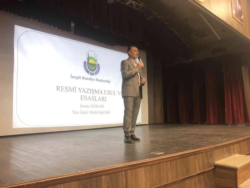 İnegöl Belediyesi tarafından hizmet içi eğitimler çerçevesinde personele yönelik ’“Resmi Yazışma Kuralları’ eğitimi düzenlendi.
