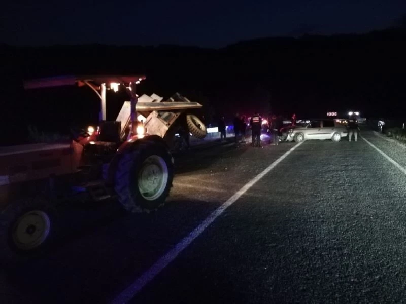 Bursa’da İnegöl-Domaniç karayolu üzeri Tahtaköprü mevkiinde otomobil ile traktörün çarpıştığı kazada 2 kişi yaralandı.