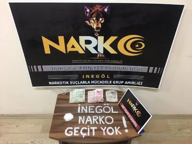 İnegöl Narkotik Suçlarla Mücadele Büro Amirliği ekiplerince Bursa’dan ilçeye uyuşturucu getirdiği tespit edilen araç Süleymaniye Mahallesinde durduruldu. Yabancı uyruklu İsmail M. ve Ahmed A. isimli şahıslar gözaltına alındı. Şahıslar üzerinde ve araçta yapılan aramada 65 gram mMetamfetamin ve uyuşturucu ticaretinden elde edildiği tahmin edilen 705 TL para ele geçirildi. Bahse konu şahıslar adliyeye sevk edildi. İsmail M. adlî kontrol şartıyla serbest kalırken, Ahmed A. isimli şahıs çıkarıldığı mahkemece tutuklandı.