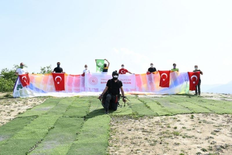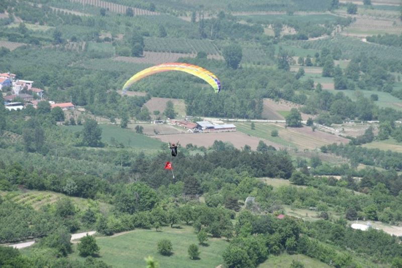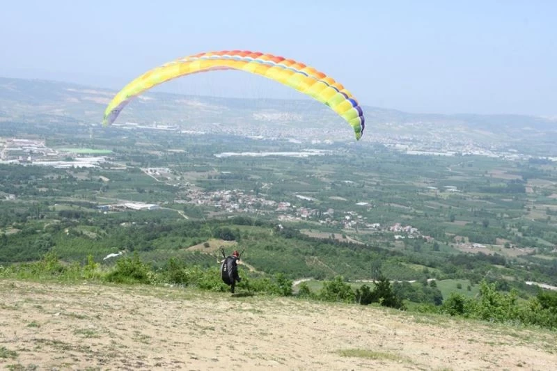 İnegöl Doğa Sporları ve Turizm Merkezi Cerrah tepesinde 19 Mayıs Atatürk’ü Anma Gençlik ve Spor Bayramı’na özel yamaç paraşütü uçuş etkinliği düzenledi.