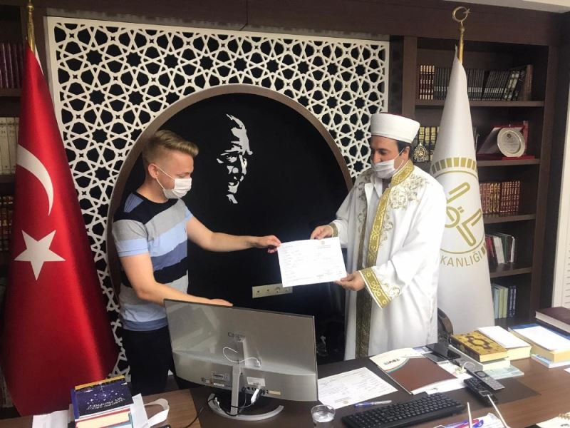 Antalya’nın Alanya ilçesinde 24 yaşındaki İngiliz Naycil Arthur, ilçe müftülüğünde Kelime-i Şehadet getirerek Müslüman oldu ve Naci adını aldı.