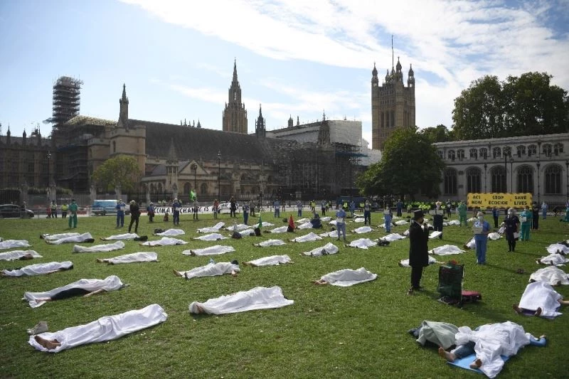 İngiltere’de başkenti Londra’da çevreciler tarafından 1 Eylül itibariyle geniş çaplı protestolar başlatıldı. Parlamento meydanında bir araya gelen eylemciler, “Yok Oluş İsyanı” (Extinction Rebellion) kapsamında, iklim değişikliklerine dikkat çekti. Eylemciler kefen giyerek yere uzanarak sessiz eylem gerçekleştirirken polis ise, Parlamento Meydanı, Big Ben ve Başbakanlık ofisi çevresinde geniş güvenlik önlemi aldı. Eylemciler, kefen giyerek iklim değişikşiğinin ölümlere neden olduğuna bir kez daha sıradışı bir şekilde dikkat çekmek istedi.