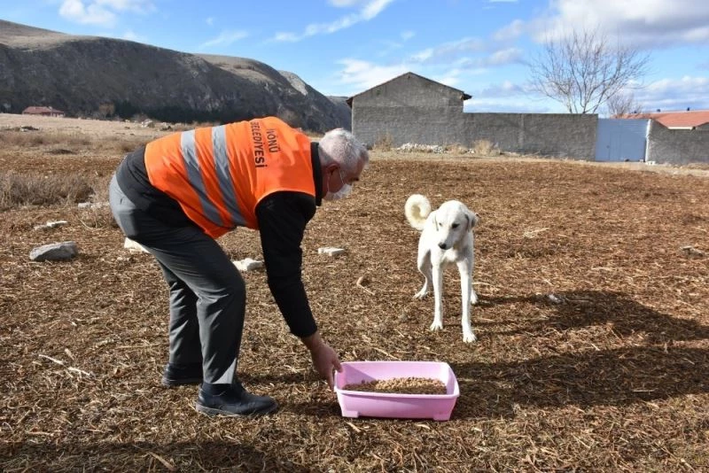 İnönü Belediyesi korona virüs tedbirleri nedeniyle sokaklar boş kalınca ilçenin dört bir yanında sokak hayvanlarına mama dağıtıyor.
