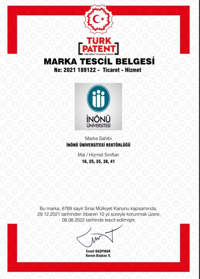 Malatya İnönü Üniversitesi “Marka Tescil Belgesi” aldı.