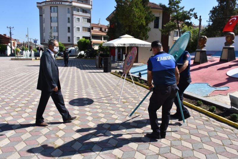 Kutlamalar ilçe Cumhuriyet Meydanı’ndaki Atatürk Anıtına çelen konması ve başta Gazi Mustafa Kemal Atatürk olmak üzere ebediyete intikal etmiş tüm şehit ve gaziler için saygı duruşu ve akabinde İstiklal Marşı’nın okunması ile başladı.