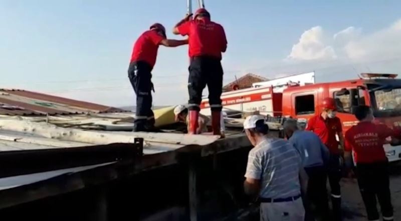 İnşaat çukuruna düşen kurbanlık danayı itfaiye kurtardı