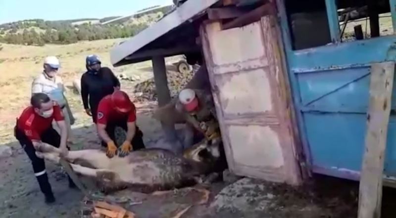 Kırıkkale’de bir inşaat çukuruna düşen kurbanlık dana itfaiye ekiplerince kurtarıldı.