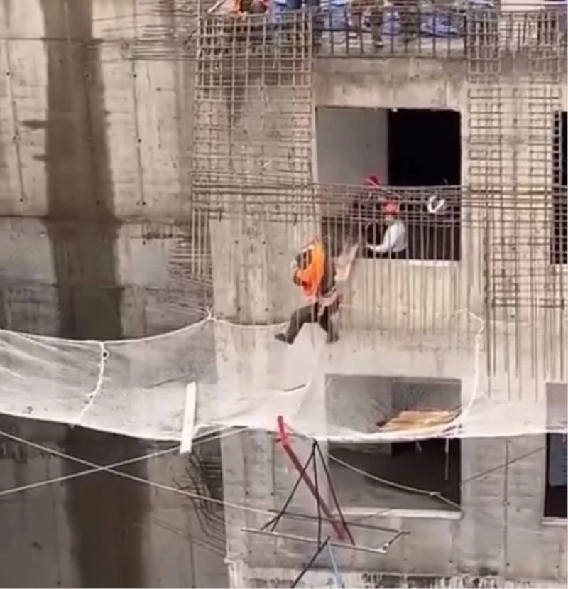 İnşaat işçisi metrelerce yüksekten yere çakılmaktan son anda kurtuldu