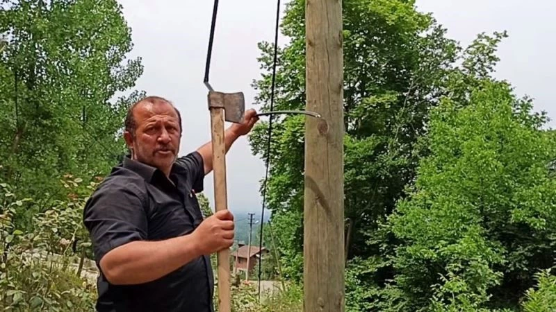 Sakarya’nın Akyazı ilçesinde bulunan mahallelerinde bir süredir internet sorunu yaşadıklarını ve gerekli başvurulara rağmen hizmeti alamadıklarını öne süren mahalle muhtarı, eline aldığı balta ile önce kabloları kesti daha sonrasında ise telefon direklerini parçaladı.