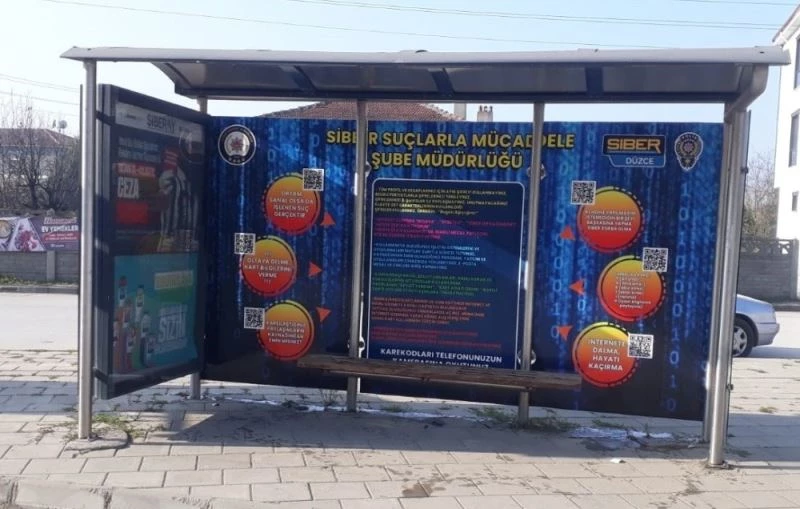 Düzce Emniyet Müdürlüğü Siber Suçlarla Mücadele Şube Müdürlüğü tarafından güvenli internet kullanımına ilişkin farkındalık programı gerçekleştiriliyor. İnternet ve teknoloji bağımlılığına dikkat çekilerek şehir merkezinde bulunan duraklara afişler asıldı.