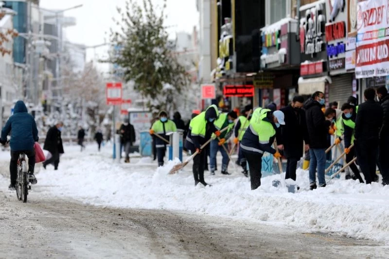 Van’ın İpekyolu Belediyesi, etkili olan kar yağışının ardından şehir merkezi ve mahallelerde yol açma çalışmalarına başladı.