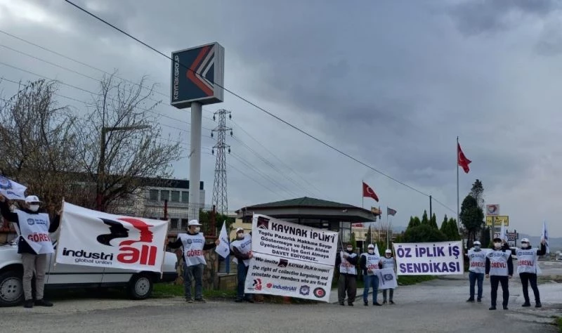 “Firma sendikamızla kesinlikle bir diyaloga girmediği gibi, fabrika içinde fabrika yöneticileri tarafından sendikadan istifa edenlere yüksek prim verme vaadinde bulunma, sendikasızlara yüksek prim verilerek açık bir şekilde ayırımcılık yapılmanın yanı sıra daha da ileriye giderek örgütlenme sürecinde aktif rol alan dört üyemiz işten çıkarılmıştır. Öz İplik İş Sendikası işten çıkarılan dört işçinin tekrar işe alınması için Denizli’de Kaynak İplik’in merkezinin önünde ‘Kaynak İplik’i Toplu Pazarlık Hakkına Saygı Gösteremeye ve İşten Atılan Üyelerimizi İşe Geri Almaya Davet Ediyoruz’ yazılı pankart açtı.”