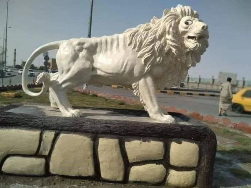 Irak’ta yaklaşık 65 bin dolara mal olan bir aslan heykeli büyük tepki uyandırırken sosyal medyada Iraklılar tarafından alay konusu oldu.