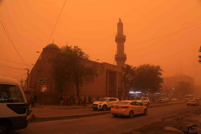 Irak’ta etkili olan kum fırtınası nedeniyle Uluslararası Bağdat Havalimanı ile Uluslararası Necef Havalimanında uçuşlar askıya alınmıştı.