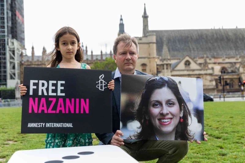 İran’da casusluk suçlamasıyla 2016’da Tahran Havalimanı’nda gözaltına alınan ve 5 yıl hapis cezasına çarptırılan yardım kuruluşu çalışanı Nazanin Zaghari-Ratcliffe’e "rejime karşı propaganda faaliyeti yürütme" nedeniyle tekrar 1 yıl daha hapis cezası verilmişti. Nazanin Zaghari-Ratcliffe’in eşi Richard Ratcliffe, eşinin serbest bırakılması için Londra’da Dışişleri Bakanlığı önünde 3 hafta açlık grevi yapmıştı.