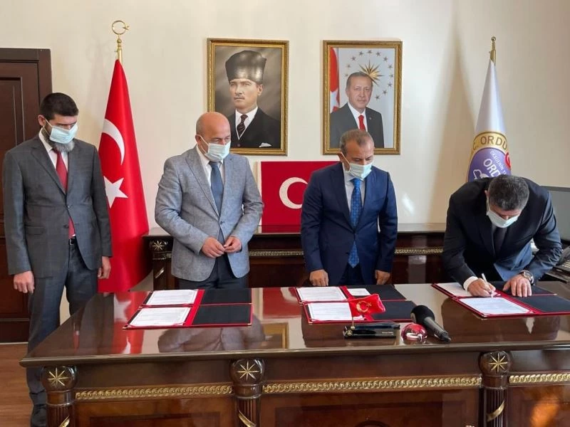 Ünye ilçesi Bayramca ve Hamidiye Mahallelerinde yapılacak Aile Sağlığı Merkezi ile 112 Acil Sağlık Hizmetleri İstasyonlarının yapım protokolü, Vali Tuncay Sonel, İl Sağlık Müdürü Dr. Mustafa Kasapoğlu, iş adamları Göç kardeşler adına Mustafa Göç tarafından imzalandı.