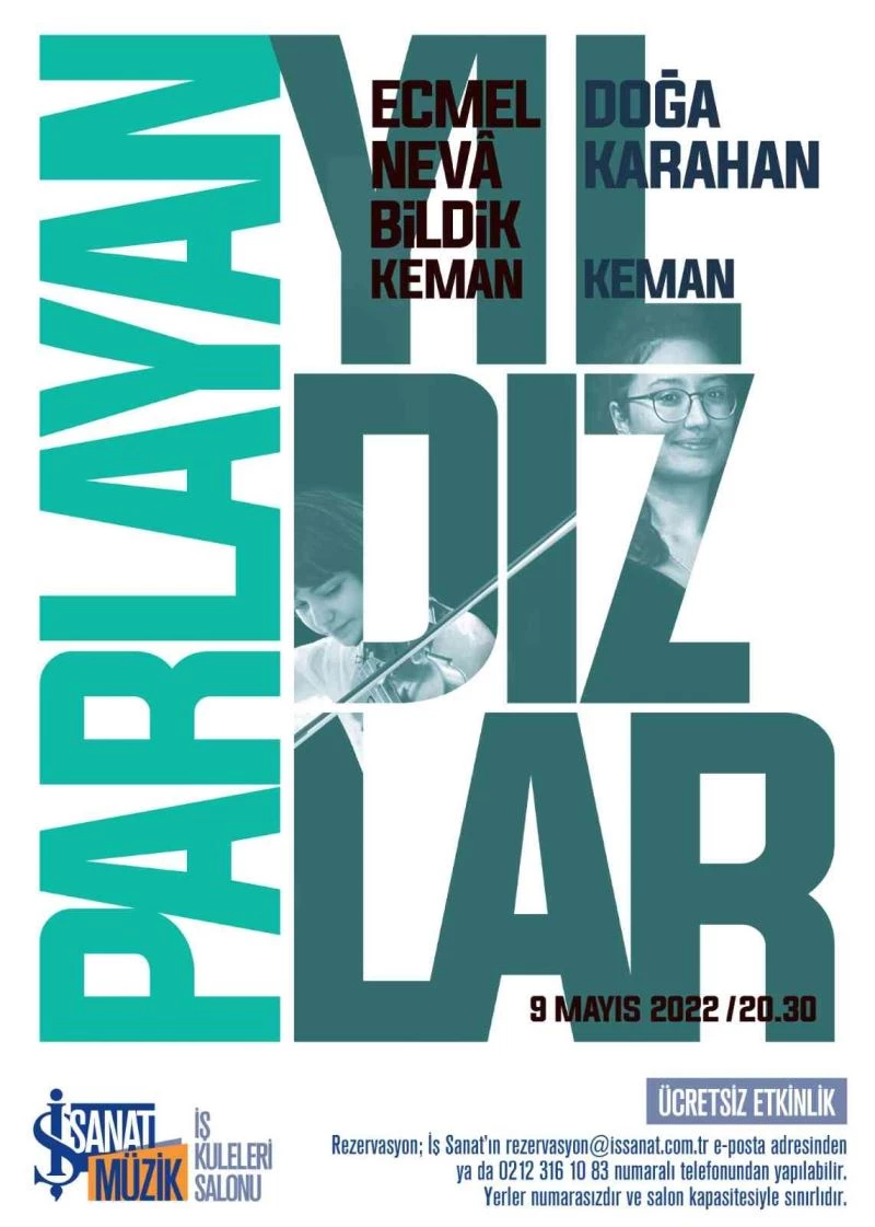 Parlayan Yıldızlar serisinin ilk konseri, 9 Mayıs Pazartesi Ecmel Nevâ Bildik (keman) ve Doğa Karahan’ın (keman) sahne alacağı konserler ile saat 20.30’da başlayacak.