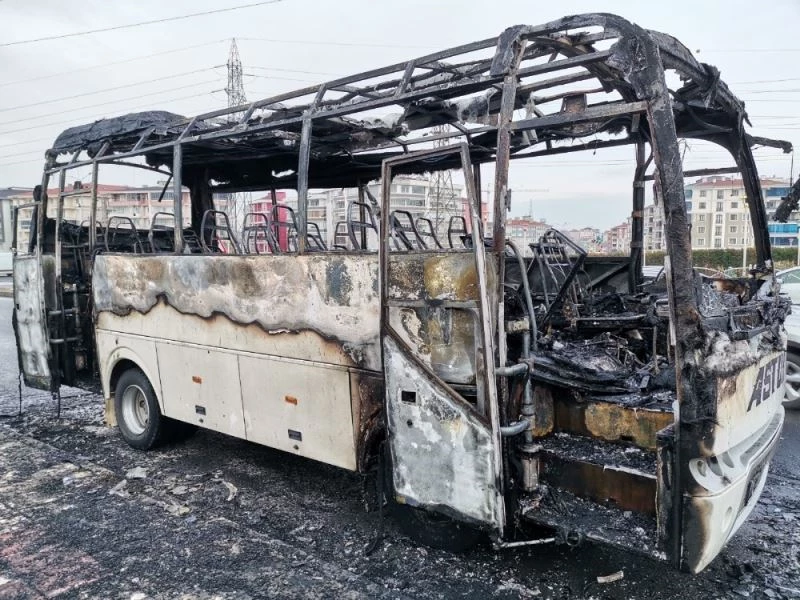 Tekirdağ’ın Çorlu ilçesinde işçi servisi alevlere teslim oldu. Facianın eşiğinden dönülen yangında minibüs kullanılamaz hale geldi.