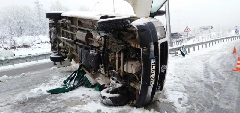 Bartın’da tünel işçilerini taşıyan servis minibüsü devrildi. Kazada 11 kişi yaralandı.