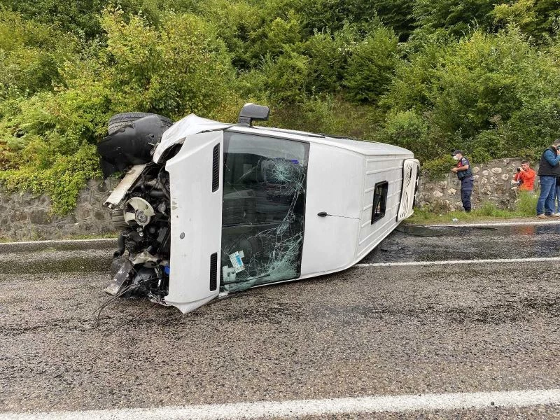 Kaza, Bartın Amasra karayolunun Uğurlar mevkiinde meydana geldi. Amasra’dan Bartın’a seyir halinde olan İsa Yıldırım’ın (47) kullandığı 74 AT 568 plakalı işçi servisi Uğurlar köyü mevkiinde yağmur nedeniyle kayganlaşan yolda kontrolden çıkarak orta refüje çarpıp devrildi.