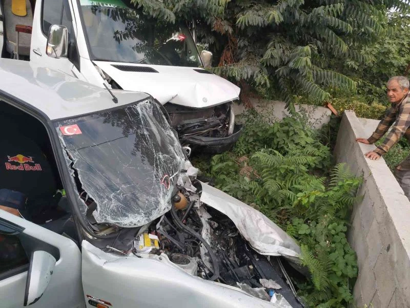 İşçi servisi ile otomobil kafa kafaya çarpıştı: 15 yaralı