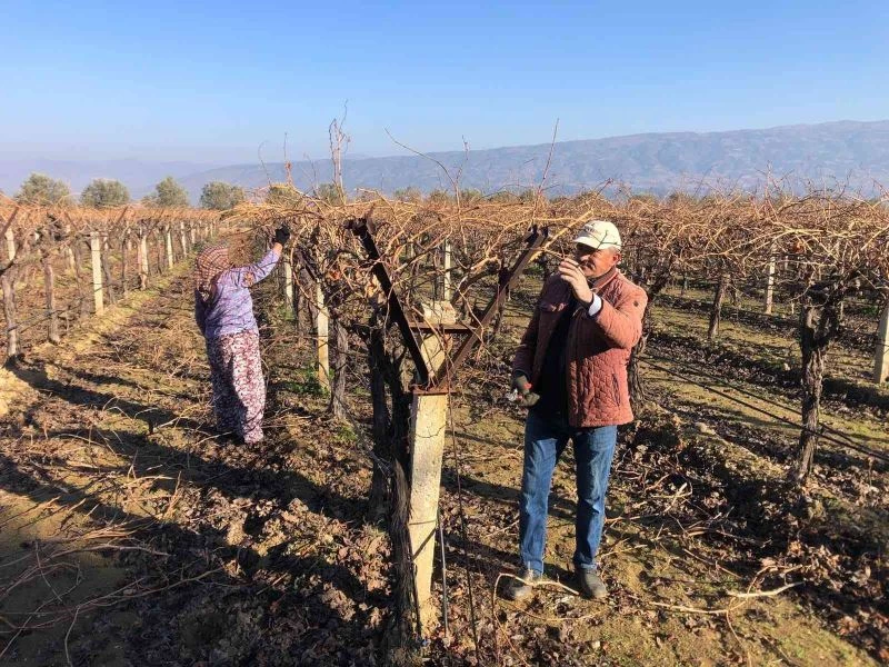 Manisa’nın dünyaca ünlü Çekirdeksiz Sultaniye üzümünün yetiştirildiği Sarıgöl Ovasında üzüm üreticileri üzüm bağlarındaki budama işlerini ailece yapmaya başladı.
