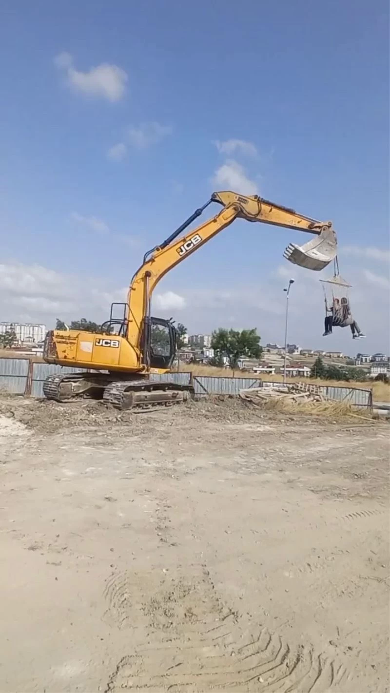 İşçiler kepçeyi salıncak yaptı, doyasıya eğlendi
